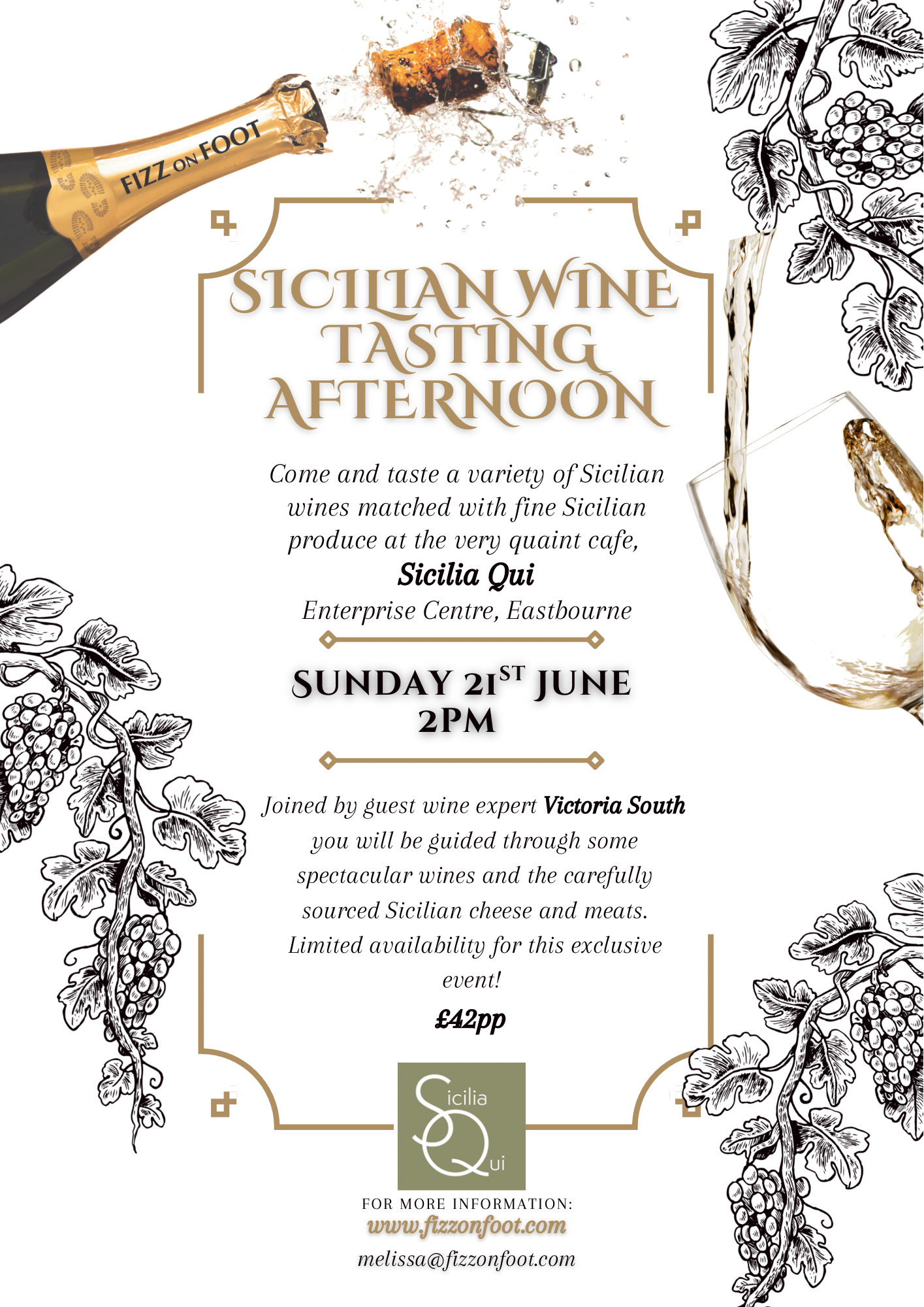 For this afternoon event we are heading to Sicily. Giovanna’s spectacular cafe in Eastbourne’s Enterprise Centre celebrates everything Sicily has to offer; art, coffee and delicious cheese and meats – a perfect location for our wine tasting evening.
